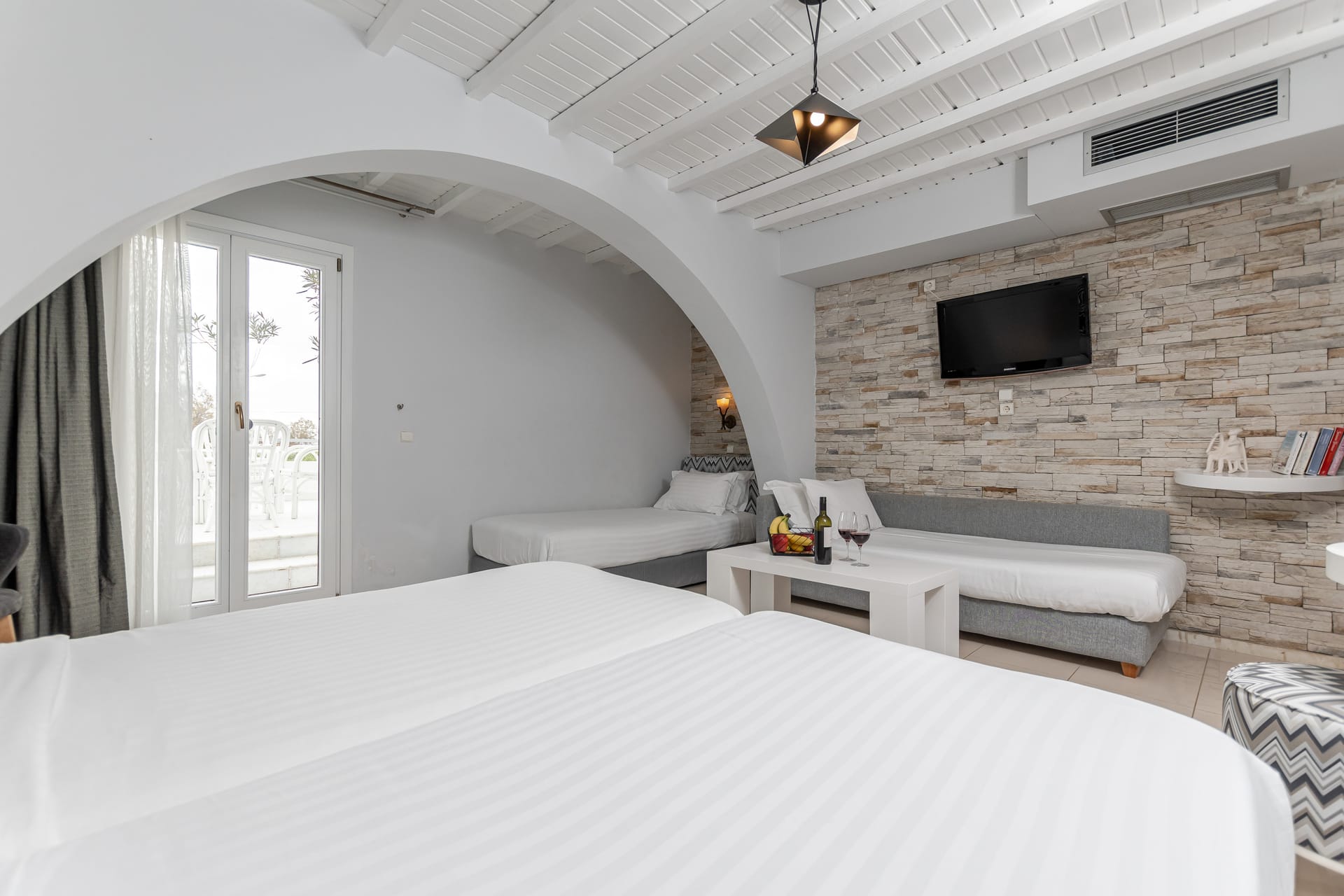 Our Family Room with Pool or Sea view can comfortably accommodate 3 adults plus one child.