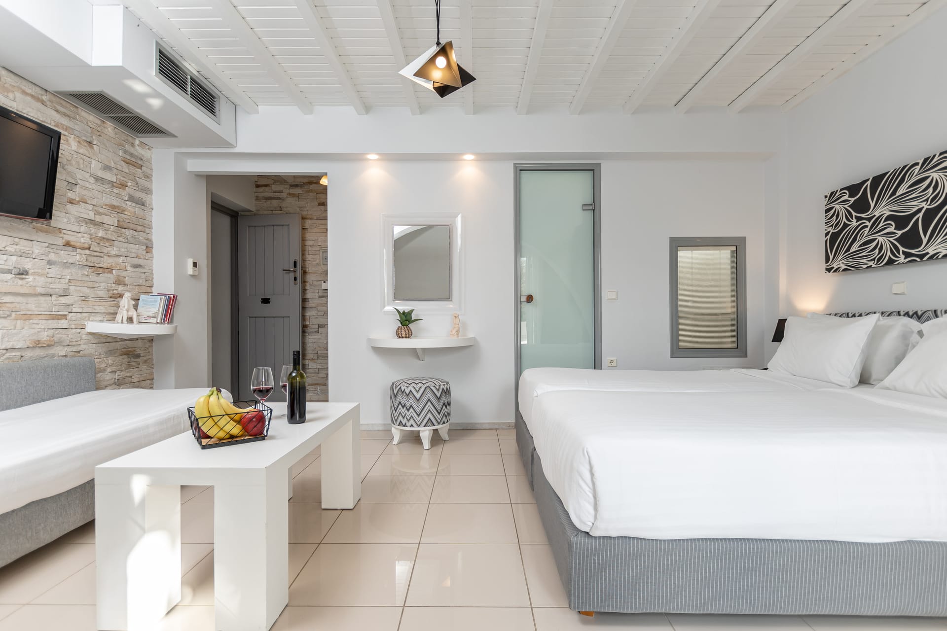Our Family Room with Pool or Sea view can comfortably accommodate 3 adults plus one child.